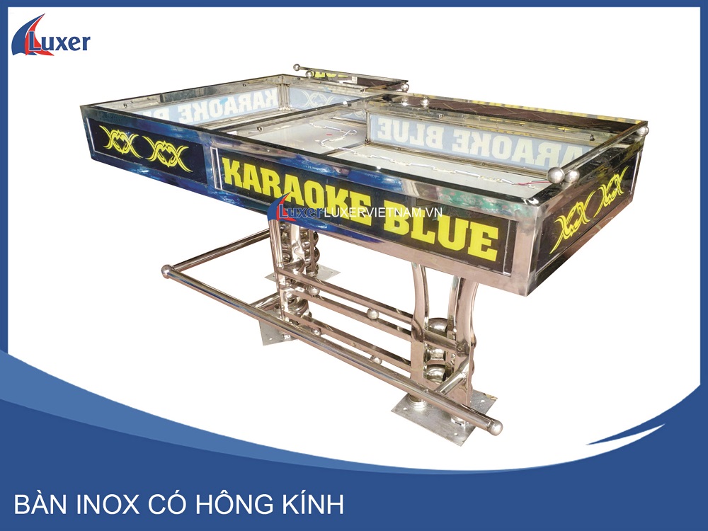 Bàn Inox có hông kính với thiết kế đơn giản mang đến sự tinh tể, sang trọng được ứng dụng nhiều trong phòng karaoke có phong cách hiện đại.