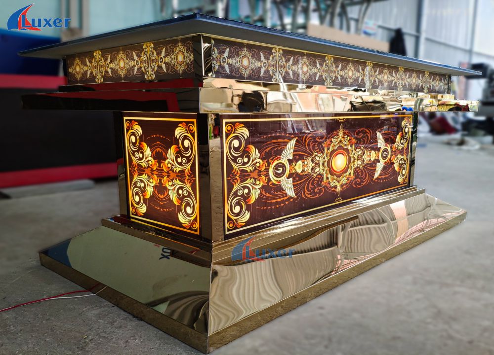 Phần mặt bàn được in UV hoặc dán backlist và kính cường lực giúp mang tới sự sang trọng cho sản phẩm.