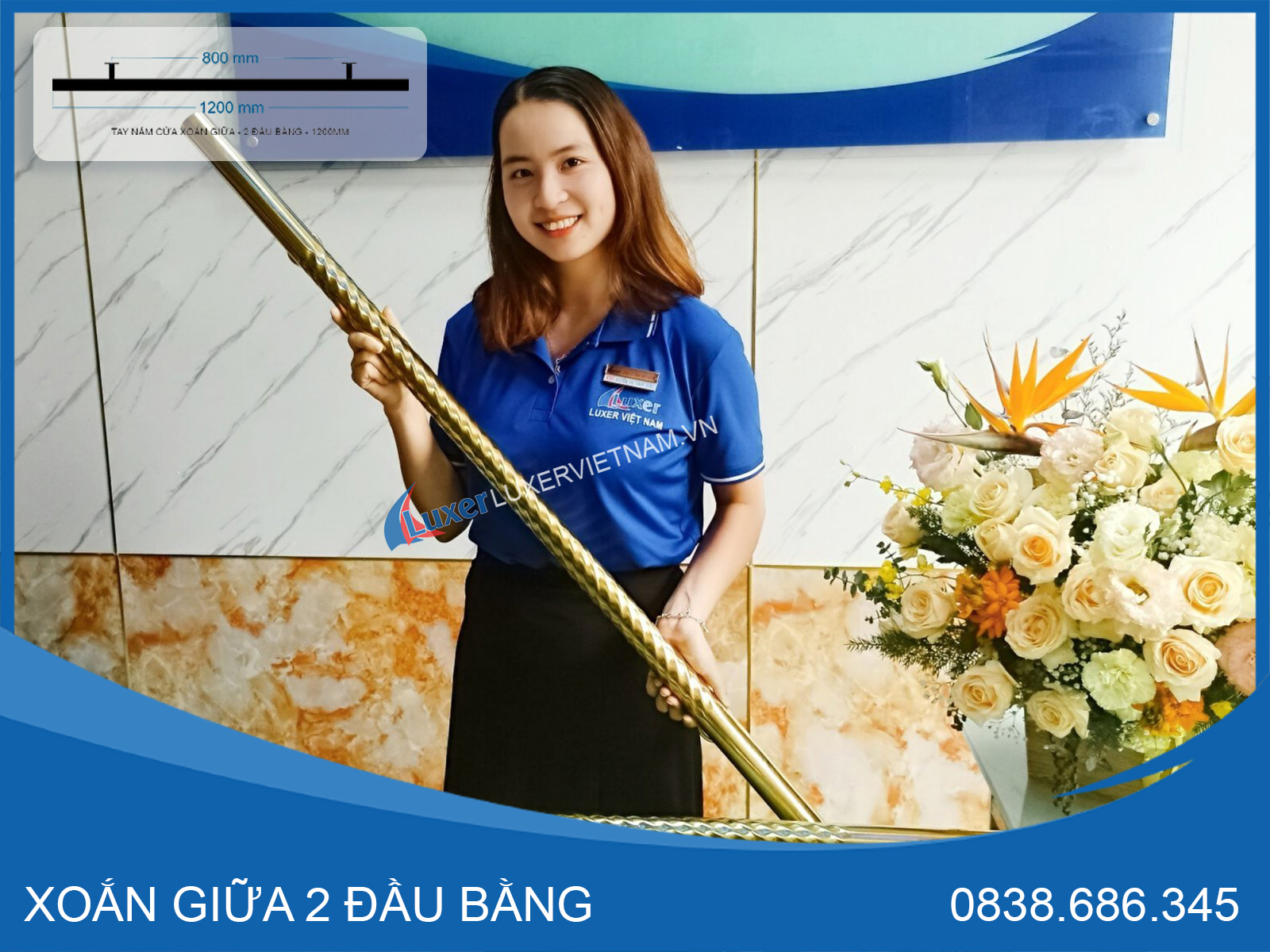 Tay nắm cửa xoắn giữa 2 đầu bằng 1200mm mạ Nano ánh Vàng - Luxer được thiết kế với kiểu dáng sang trọng, hiện đại và bền bỉ theo thời gian với đa dạng kích thước giúp tối ưu nhu cầu sử dụng của mọi khách hàng.